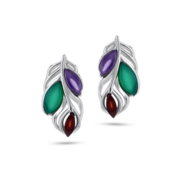 أقراط دائرية على شكل أوراق الشجر باللون الأرجواني