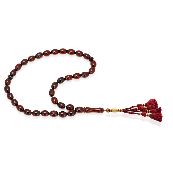 Caribbean Cherry Amber 33 Beads Rosary Olive Cut