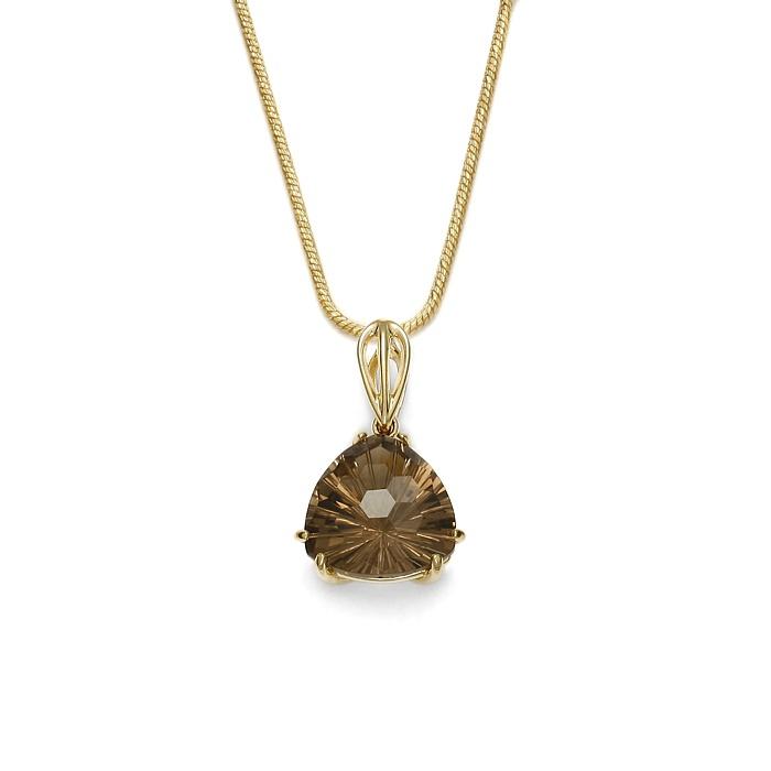 Featuring an impressive design that instantly catches everyone’s attention, the Hazy Frost 18K Gold Pendant marks a striking presence in your jewellery collection. This beautiful pendant is finely crafted using 18K gold. The smooth edges and detailed finishing manifolds its beauty. An elegant Quartz Smoky gemstone is gracefully surrounded by an exquisite trillionth-shaped frame. You can never go wrong while styling this lovely pendant with any outfit of your choice. Enhance the visual appeal by pairing this pendant with a hayseed, snake, or Cuban style chain.